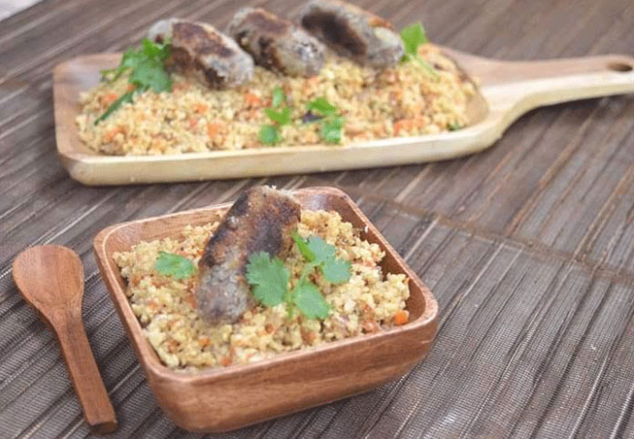 রান্না করার নিয়মঃ প্রথমে চুলায় প্যান বসিয়ে সরিষার তেল / বাটার দিয়ে গরম করে পেঁয়াজ কুচি, আদা বাটা, রসুন বাটা দিয়ে কষাতে হবে। তারপর গ্রেট করা ফুলকপি, গাজর, লবণ, সয়াসস, গোলমরিচ গুঁড়া দিয়ে ১০ মিনিট ভাল ভাবে ভাজুন। ফুলকপি সিদ্ধ হয়ে ঝরঝরে হয়ে গেলে ফেটানো ডিম দিয়ে নেড়ে ক্যাপসিকাম কুচি ও কাঁচামরিচ কুচি দিয়ে নেড়েচেড়ে নামিয়ে পরিবেশন করতে হবে।