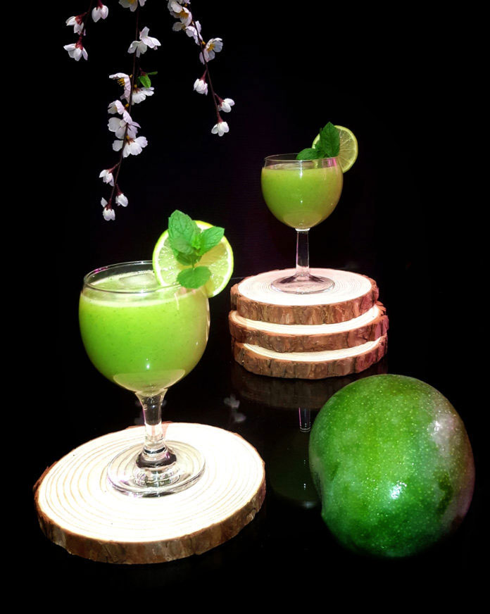রান্না করার নিয়মঃ একটি ব্লেন্ডারের জারে সামান্য পানির দিয়ে এর সাথে সব উপকরণ এক সাথে মিশিয়ে খুবই মসৃন করে ব্লেন্ড করে তারপর এর সাথে ৩-৪ গ্লাস পানি দিয়ে আবার ব্লেন্ড করুন। আপনারা কিন্তু আপনাদের স্বাদ অনুযায়ী সব কিছু দিবেন। আমার এই উপকরণে ৪ গ্লাস শরবত হয়েছে। যখন ব্লেন্ড করা হয়ে যাবে তখন একটি গ্লাসে লেবু, পুদিনা পাতা দিয়ে গার্নিশিং করে কিছু বরফের টুকরো দিয়ে পরিবেশন করুন কাঁচা আমের শরবত।