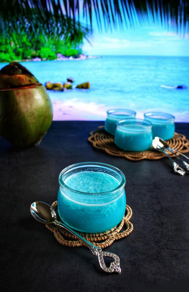 তৈরি করার নিয়মঃ প্রথমে পাতিলে ডাবের পানি, চিনি, সামান্য নীল ফুড কালার এবং আগার আগার পাউডার সব এক সাথে ভালো করে মিশিয়ে তারপর চুলায় জ্বাল দিন। বলক আসা পর্যন্ত অপেক্ষা করুন। অপর দিকে মোল্ডে কুচি করা ডাবের শাঁস বিছিয়ে নিন। এবার মিশ্রণটিতে বলক আসলে ভালো করে সব এক সাথে মিশে গেলে সাথে সাথে গরম থাকা অবস্থায় ধীরে ধীরে মোল্ডে ঢালতে হবে, উপরে যে বাবল থাকবে তা একটি চামচ দিয়ে সরিয়ে নিন। লেয়ার সেট হওয়ার জন্য ২ ঘন্টা মোল্ড বাহিরে রাখুন। পুরোপুরি ঠান্ডা হলে তখন নরমাল ফ্রিজে রাখুন। গরম থাকা অবস্থায় মোটেও ফ্রিজে রাখা যাবে না। নরমাল ফ্রিজে ৩-৪ ঘন্টা রাখার পর ভালোভাবে সেট হয়ে ঠান্ডা হয়ে গেলে নামিয়ে পরিবেশন ঠান্ডা ঠান্ডা করুন আর যদি বড় মোল্ড হয় তাহলে ডিমোল্ড করে কেটে ঠান্ডা ঠান্ডা পরিবেশন করুন দারুণ মজার রিফ্রশিং থাই কোকোনাট জেলো পুডিং।