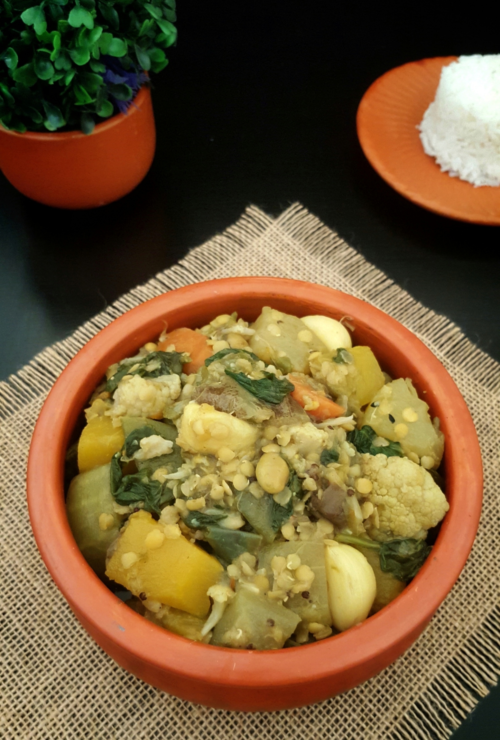 রান্না করার নিয়মঃ প্রথমে ডাল পানিতে আধা ঘন্টা ভিজিয়ে রেখে যখন ডাল ফুলে উঠবে তখন ছাঁকনিতে ছেঁকে নিন। তারপর সবগুলো সবজিগুলো ভালো করে ধুয়ে কেটে নিন।